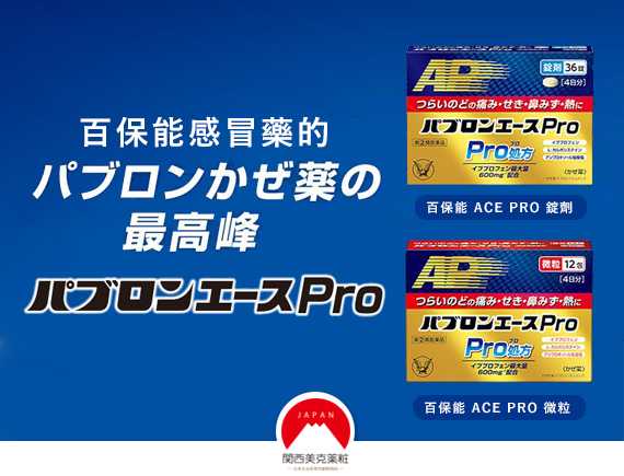 In September last year (2017), in order to celebrate the 90th anniversary of the launch of "Bapolania Cold Medicine", Taisho Pharmaceutical launched a new product "Taisho Pabron ACE PRO Comprehensive Cold Medicine", which is available in tablet form and granular form. This new member of the Babolan family is added with the highest allowable dose of ibuprofen (600mg per day) in the patented medicine, which is designed to treat cold symptoms such as sore throat and cough.